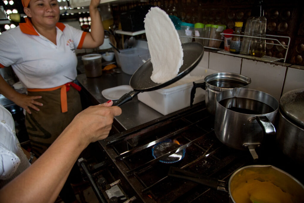 Lulu Kethlen, funcionária da barraca da ‘Dona Neném’, conta que começou na tapiocaria ajudando a mãe e, hoje, trabalha ao lado dos sobrinhos, mantendo viva a tradição familiar.