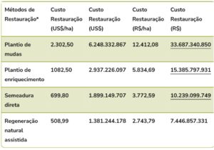 Embora o valor total previsto para o Projeto Arco da Restauração do Governo (R$ 1 bilhão) cubra a estimativa mínima da regeneração natural, o custo real da recuperação, especialmente em métodos como a da regeneração natural assistida – que pode chegar a R$ 7,5 bilhões -, evidencia a insuficiência dos recursos atuais.