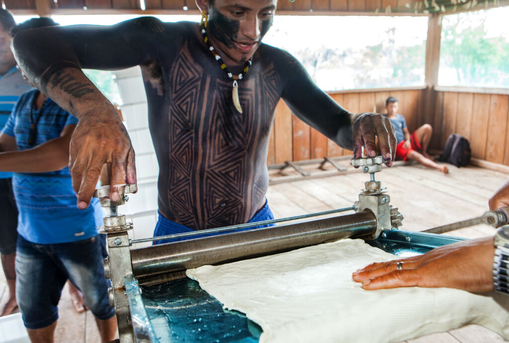 “Em nenhum momento exigimos quantidades. O jeito de vida deles é diferente. Se eles têm castanha, eles vão colher castanha. Não vamos impor o quanto queremos comprar, compramos o quanto eles produzem. Teve ano que compramos cinco toneladas. Em 2021, compramos duas toneladas. É um volume que representa uns 2% do que precisamos de borracha nativa na Mercur”.