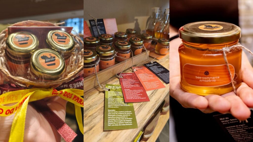 Bee Commerce Amazônia – Oferta méis de diferentes espécies de abelhas com e sem ferrão vindos de comunidades familiares no nordeste do Pará. O empreendimento focado no mel de espécies nativas também trabalha com refis e experiência sensorial guiada, onde é possível experimentar as mudanças de dulçor, aroma e cor em cada variedade que pode ser usada como remédio caseiro, assim como em alimentos e bebidas.  Os produtos custam a partir de R$ 18,50, já a experiência guiada custa R$ 90.