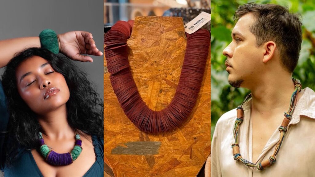 Da Tribu – O empreendimento social de moda produz joias sustentáveis (brincos, pulseiras e colares), a partir de fios de borracha natural amazônica, madeira e papel reciclado. A marca alia o propósito de preservar a identidade e os saberes da ancestralidade cabocla junto à tecnologia social, sofisticação, beleza e autenticidade. A partir de R$ 52.