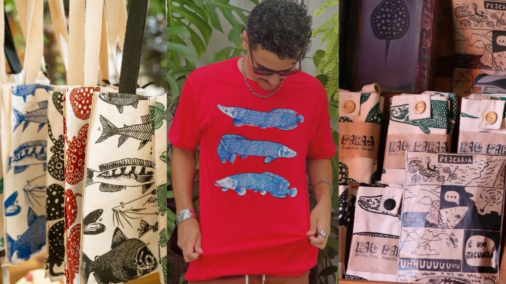 Rio Piriá – Por meio da serigrafia, a marca idealiza estampas com base nas tradições e do cotidiano amazônico e as transporta para camisetas, ecobags, cangas e o que mais a imaginação permitir, já que recebe encomendas personalizadas. A Rio Piriá trabalha com produtos a pronta entrega e sob demanda a partir de R$ 100.