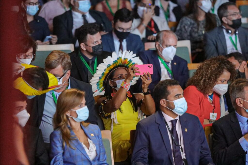 A fala da professora, enfatizando a necessidade de participação das comunidades tradicionais no debate da bioeconomia, já que são elas mantêm a floresta em pé, foi feita justo após uma saia-justa no evento. A ativista indígena Puyr Tembé (na foto), pertence à aldeia dos Tembé do Alto Rio Guamá, se indignou com a escassez de indígenas na programação do Fórum. Ela cobrou em alto e bom tom que era um “absurdo” o evento internacional falar de bioeconomia sem a presença dos povos. Leia mais aqui sobre esse pitiú.
