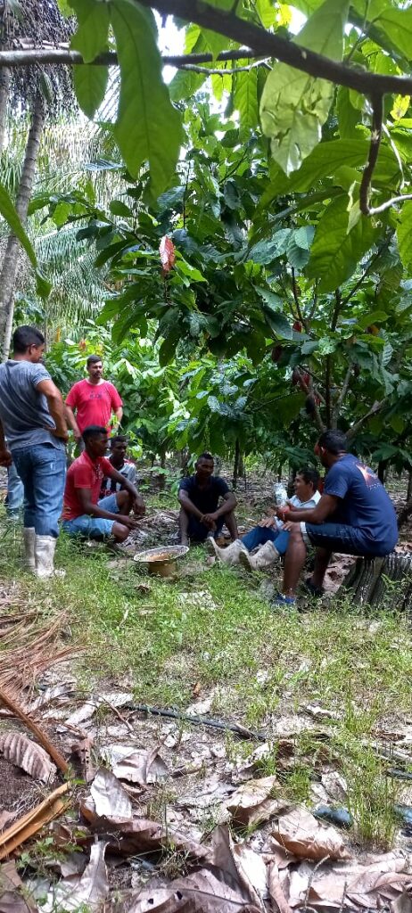 Doze produtores de quatro comunidades de São Miguel do Guamá viajaram para o município limítrofe de Santa Maria para conhecer uma experiência bem-sucedida de plantio consorciado de açaí e cacau.