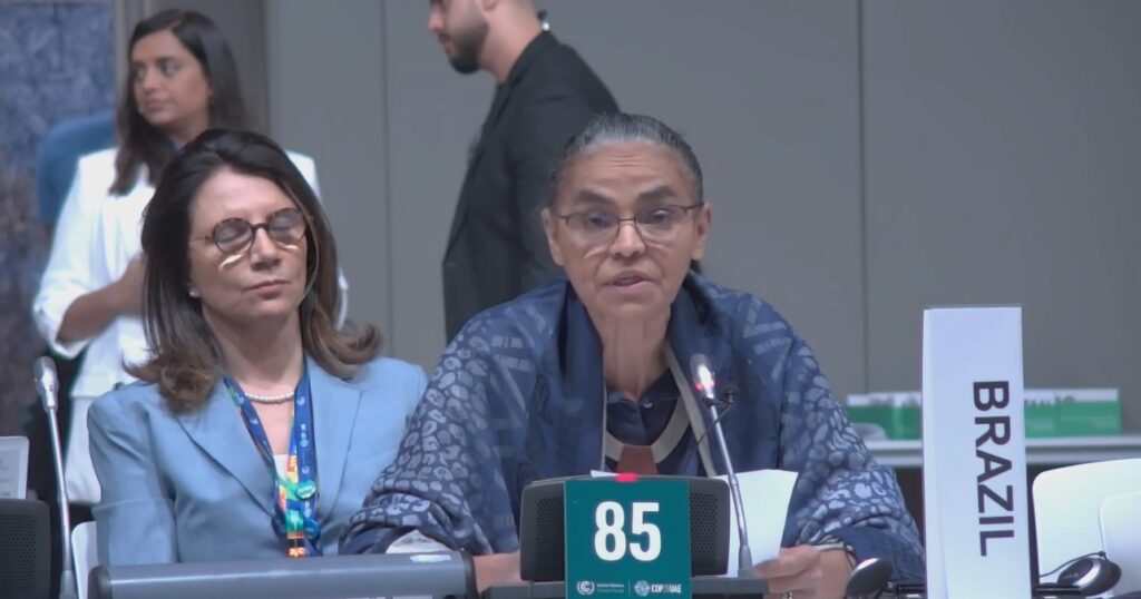 A ministra do Meio Ambiente e Mudança do Clima e chefe da delegação brasileira na COP28, Marina Silva, discursou neste sábado, 9, em uma reunião sobre as ambições climáticas pré-COP30. A eliminação da dependência dos combustíveis fósseis e o esforço coletivo para conter o aumento da temperatura global em 1,5ºC acima dos níveis pré-industriais foram principais pontos tratados no encontro.