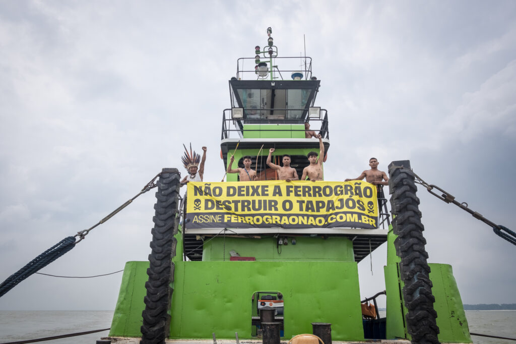 Durante o ato pacifico, os manifestantes ocuparam cinco barcos e 15 bajaras, que são embarcações de menor porte, e estenderam um cartaz com a frase “Não deixe a Ferrogrão destruir o Tapajós”. A ação buscou também mobilizar o público para assinar a petição da Aliança contra a Ferrogrão, que já reúne 39 movimentos e organizações da sociedade civil.